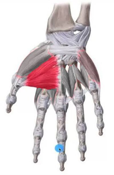 The adductor pollicis muscle is a muscle in the hand that functions to adduct the thumb. It has two heads: transverse and oblique. It is a fleshy, flat, triangular, and fan-shaped muscle deep in the hand at the center of the palm.