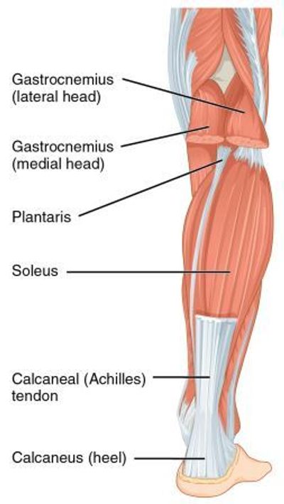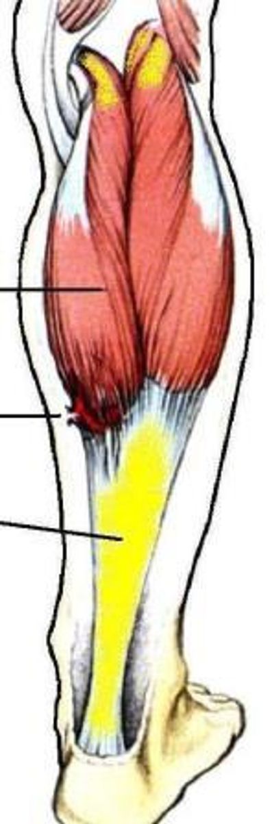 Insertion: tendo calcaneus (achilles tendon) into mid-posterior calcaneus (heel)